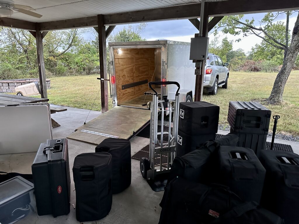 Nothing is more convenient than being able to back your trailer directly to the edge of the performance area for load out–particularly when it is raining!! At American Legion Post 21 in Winchester, Va 9/9/2023 – route11dj.com