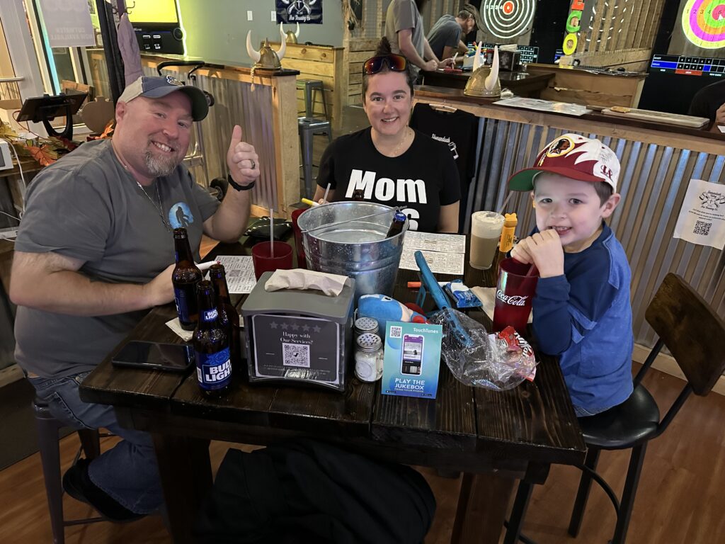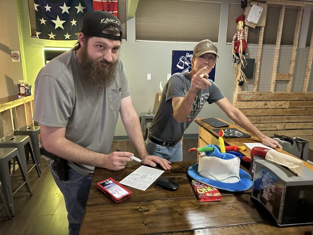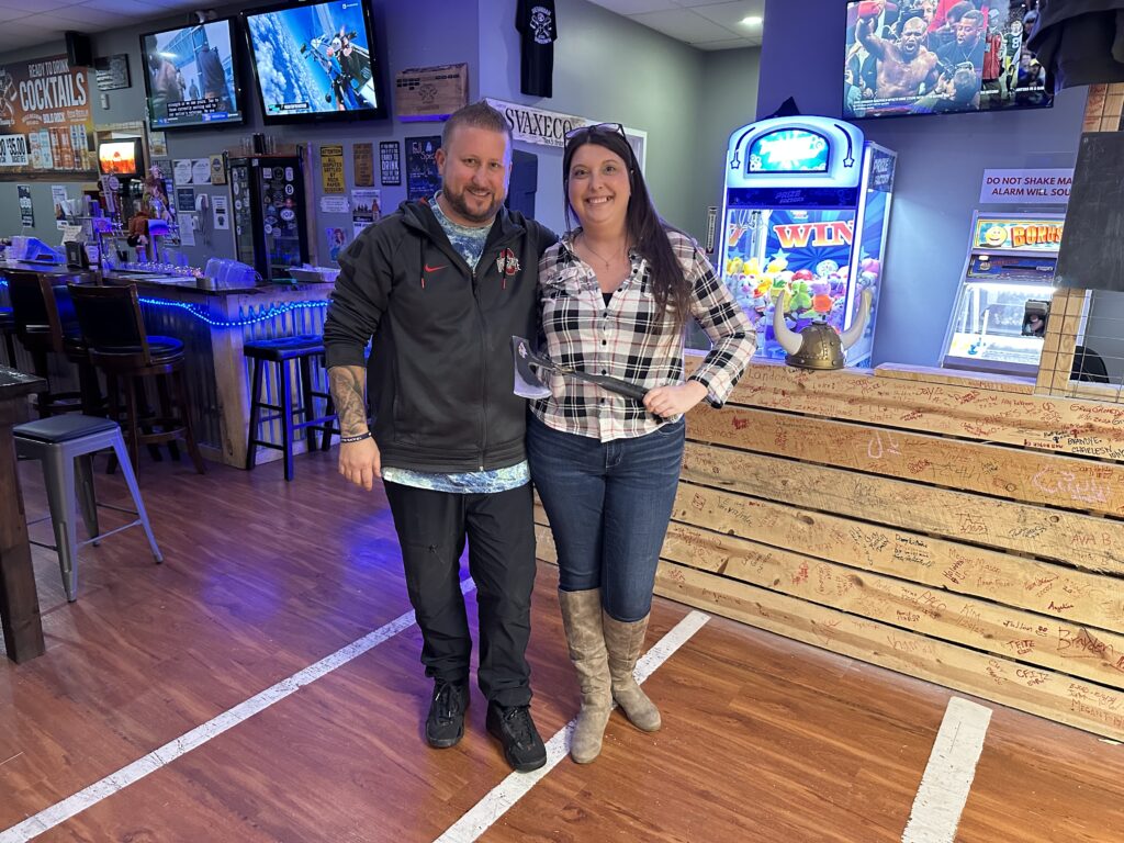 Cynthia F and Tom D sing Jackson at Shenandoah Valley Axe Throwing Co 11/9/24