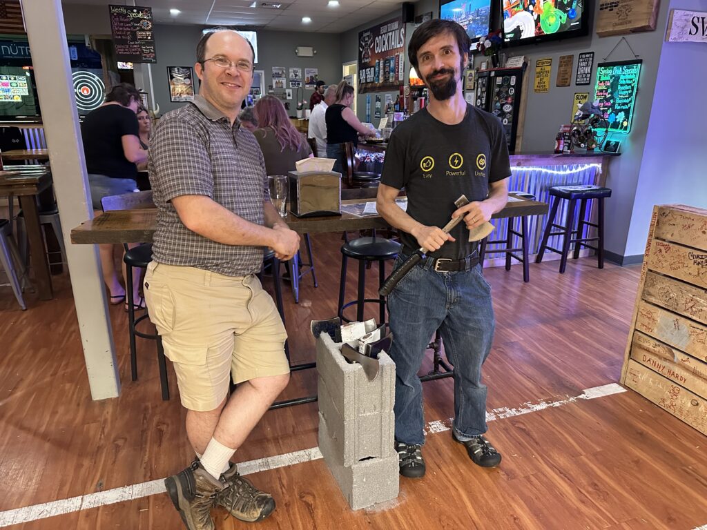 Sammy and Rob sing Beer Never Broke My Heart at Shenandoah Valley Axe Throwing Co 7/12/25