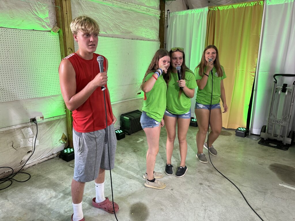 Noah, Jordan, Emma, Hayden sing Party in the USA w/ Route 11 DJ at Warren County Fair 7/28/25