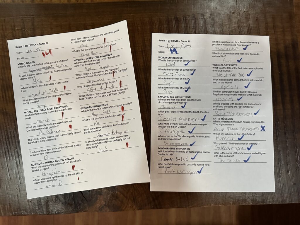 We played TRIVIA games 24-26 and MUSIC BINGO 7-10!